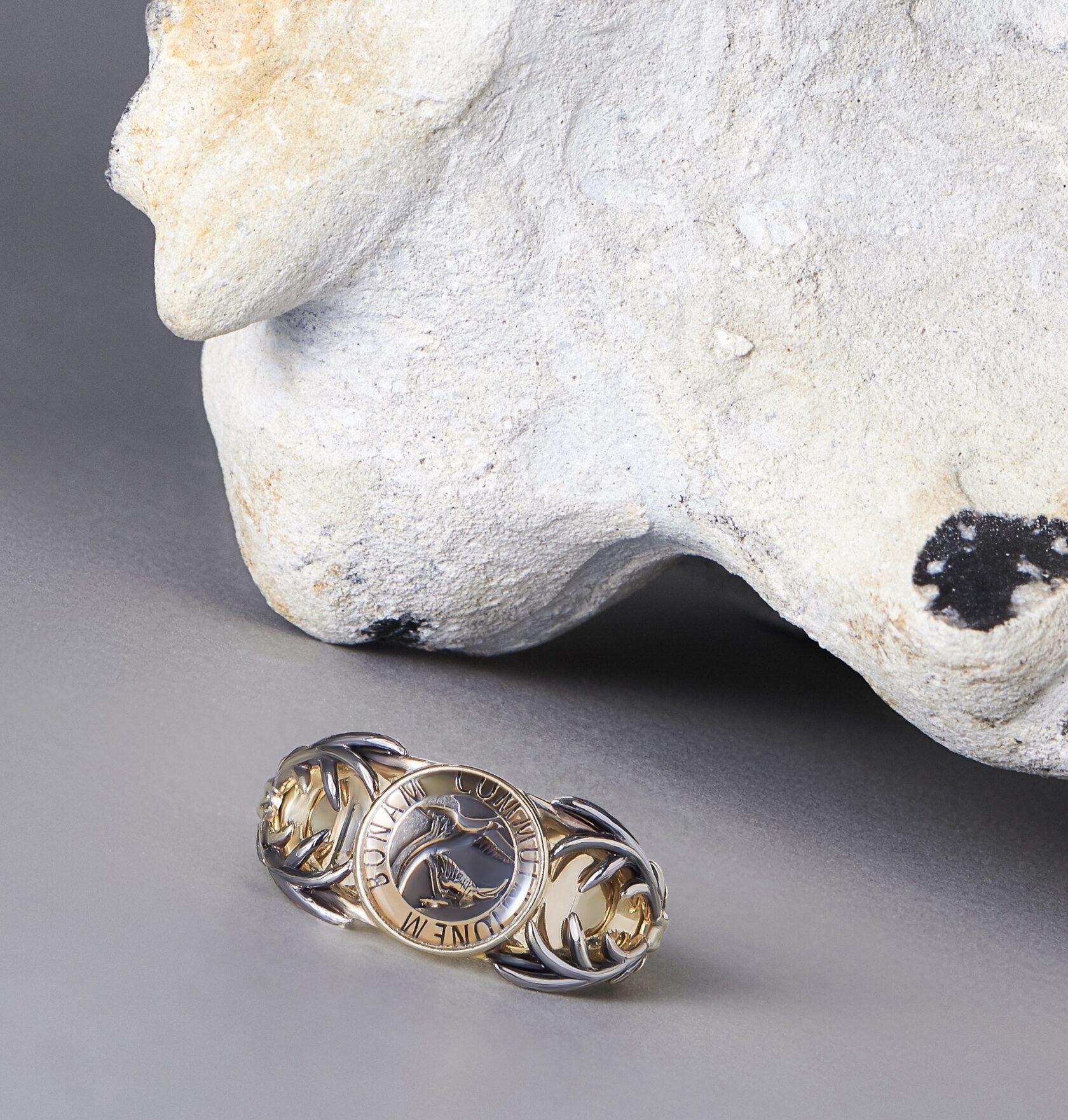 В частной коллекции "Короли охоты" представлены знаки принадлежности, разработанные для закрытого охотничьего клуба. Каждый элемент отражает историю сообщества и несёт смысл, понятный его членам